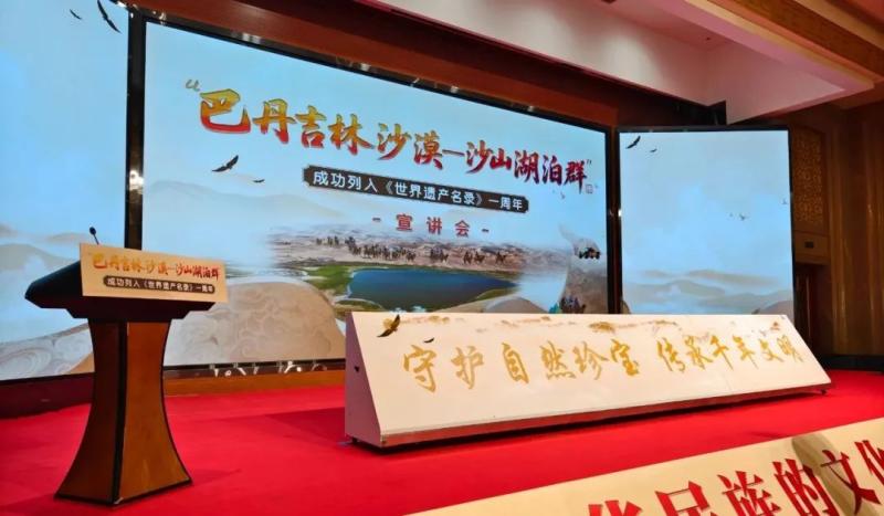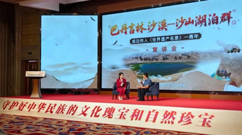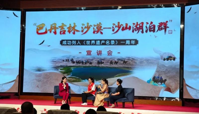 宣講會上,知名專家、一線工作者、志愿服務(wù)隊(duì)代表等宣講嘉賓和文旅從業(yè)者齊聚一堂,通過主題宣講、人物訪談的形式,共同回顧了“巴丹吉林沙漠—沙山湖泊群”申遺成功一周年以來的保護(hù)成果,立體展現(xiàn)了巴丹吉林沙漠的生態(tài)價(jià)值、保護(hù)實(shí)踐與時代意義,探討這片世界自然遺產(chǎn)的未來發(fā)展之路。