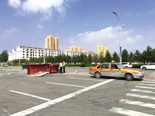 出租車駕駛員弓先生告訴記者:“當時我駕車從北向南行駛,車上有一名乘客坐在副駕駛位置,正在此處停車等待掉頭時,后面的三輪車撞了上來,當時撞擊的力度很大,把我的車撞出了線,三輪車側(cè)翻也撞倒了護欄?!惫壬f事故發(fā)生后乘客自行離開。三輪摩托車駕駛員姜先生身上多處擦傷,他說當時車上只有他一人,也是北向南行駛。姜先生說:“車上拉載的都是裝修用具和材料,事故發(fā)生時有些蒙?!?/p>