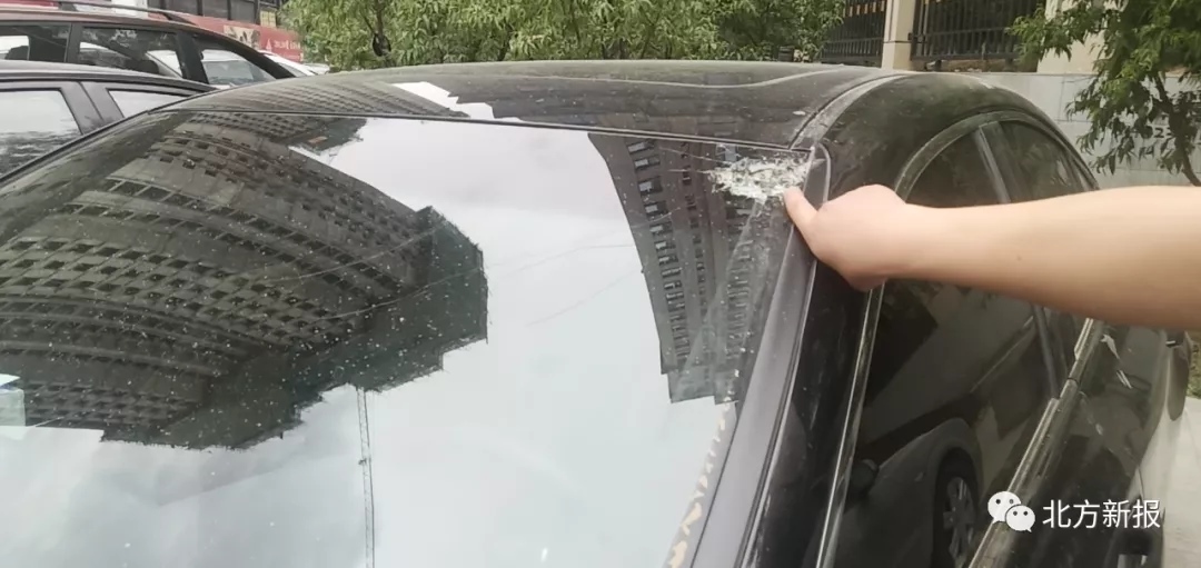 當(dāng)日15時(shí)30分,記者在正祥國(guó)際小區(qū)三期工地西側(cè)見(jiàn)到了在附近開(kāi)茶樓的賀先生。他說(shuō),他的雷克薩斯汽車是5月份才買的。記者看到,這輛車的前風(fēng)擋玻璃上有一處直徑10厘米左右的放射性裂痕,車頂上有一處明顯被砸的凹陷,車身上落滿了細(xì)碎的水泥點(diǎn)。賀先生說(shuō),正祥國(guó)際小區(qū)三期工地高空墜物,停在路邊的十幾輛車不同程度受損,他的車最嚴(yán)重。