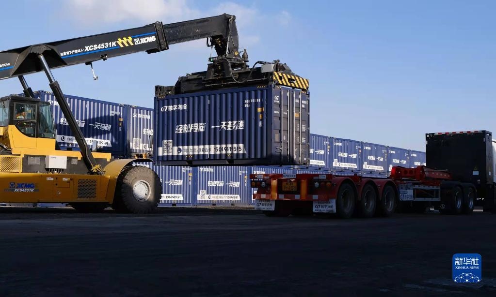 這是內(nèi)蒙古自治區(qū)包頭市九原區(qū)新近建成的“數(shù)字陸港”的作業(yè)場(chǎng)景。