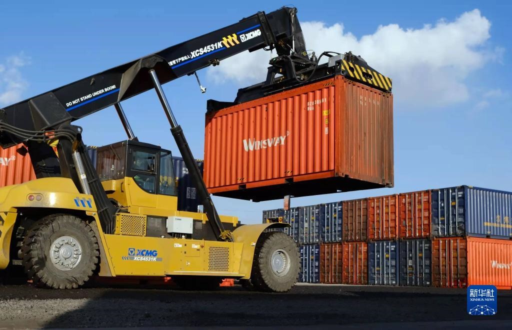 包頭市九原區(qū)“數(shù)字陸港”車在整理“甩箱”。新華社記者賈立君 攝