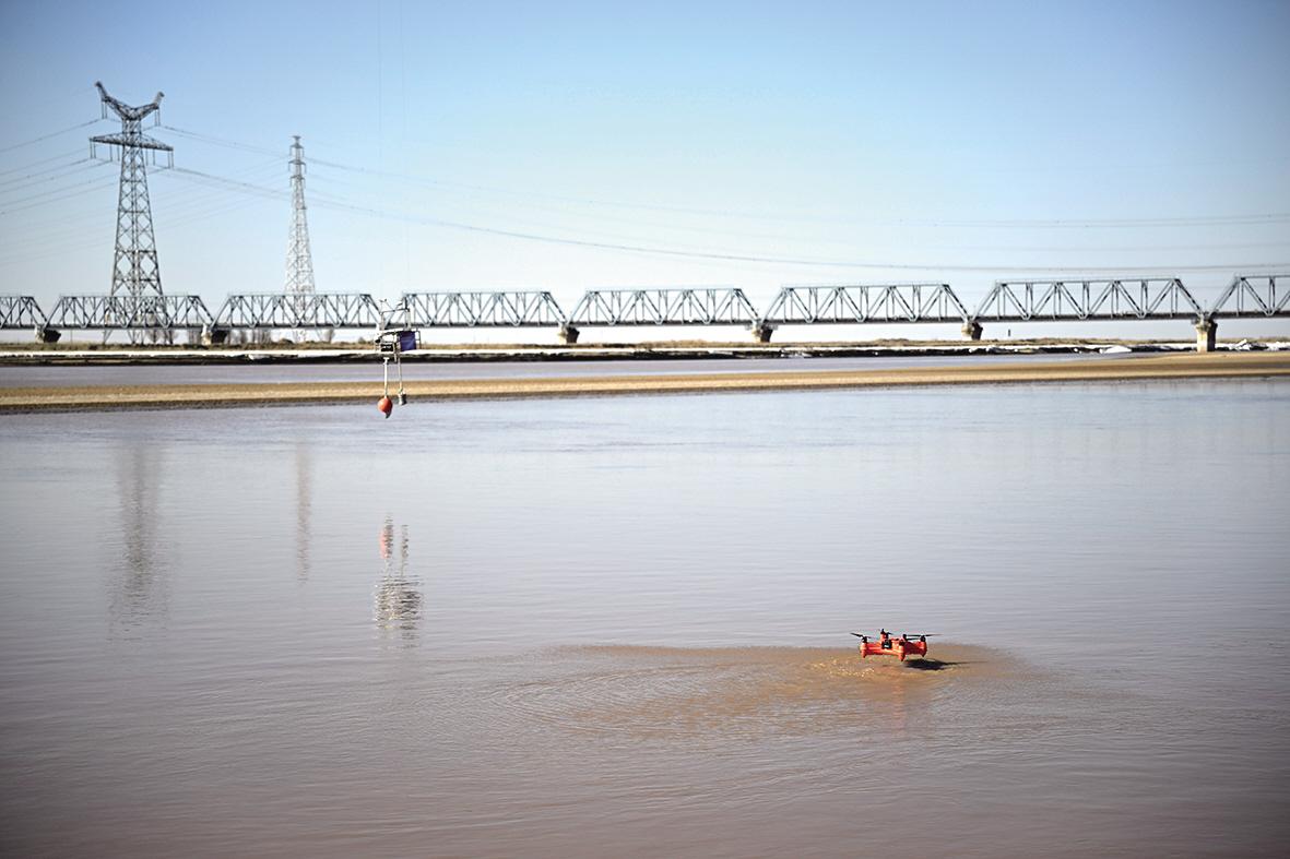 近日,隨著氣溫回升,黃河內(nèi)蒙古段多處已進(jìn)入開河期,有關(guān)部門有序開展防凌工作,確保黃河內(nèi)蒙古段全線穩(wěn)定開河。圖為3月17日在內(nèi)蒙古包頭市黃河水利委員會(huì)寧蒙水文水資源局包頭水文站拍攝的測深測速兩棲無人機(jī)。