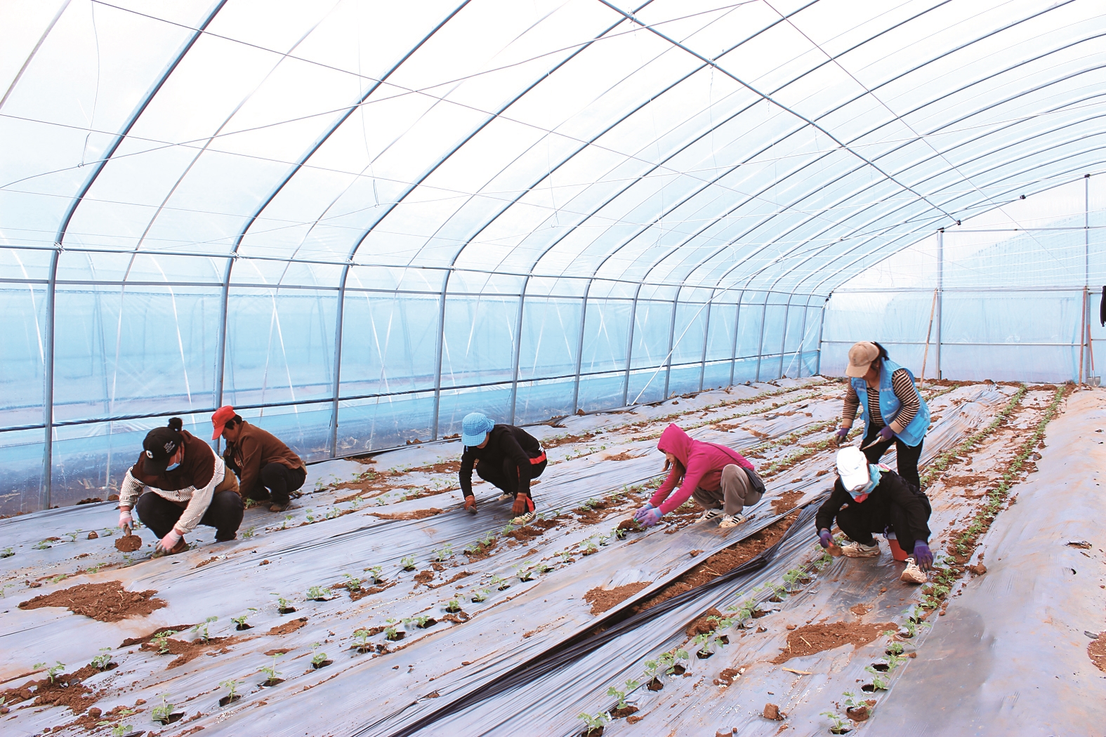 初夏時(shí)節(jié),走進(jìn)寧城縣八里罕鎮(zhèn)七家營子村新建的冷棚內(nèi),農(nóng)戶們正搶抓農(nóng)時(shí)栽植西瓜秧苗。