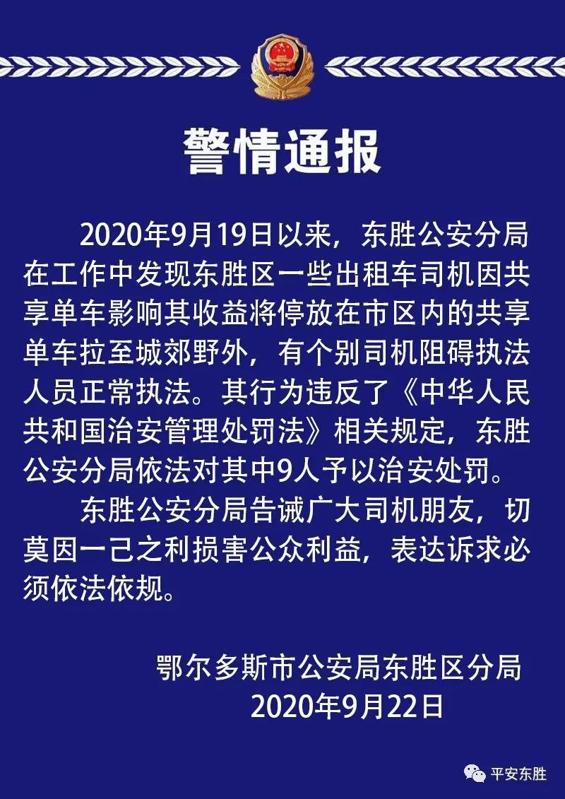 私自將共享單車拉至郊外 9名出租車司機被處罰