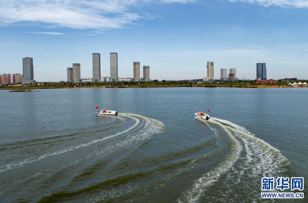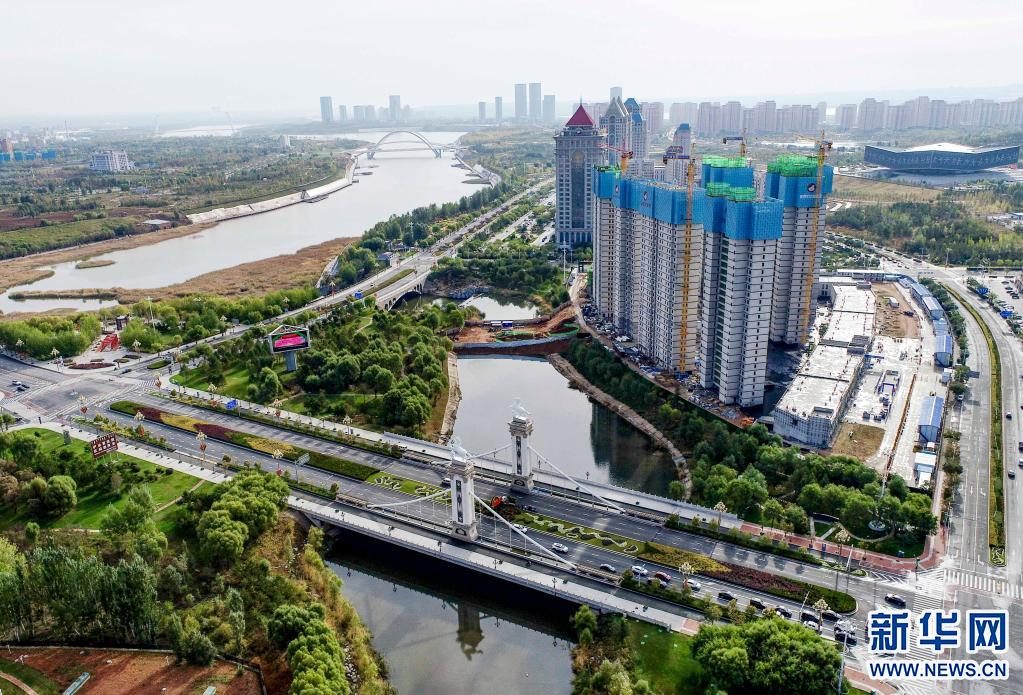 10月14日拍攝的伊金霍洛旗環(huán)城水系一景(無人機照片) 。