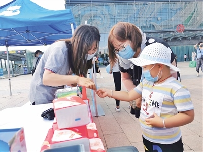 “平時(shí)吃的餅干是什么垃圾,要扔進(jìn)哪個(gè)顏色的垃圾桶?”面對(duì)宣傳員親切的小問(wèn)題,小朋友握緊了小胖手中代表小餅干的紙條,只見(jiàn)他猶豫再三,將紙條投進(jìn)了綠色的廚余垃圾迷你垃圾桶中,獲得了一份小禮品……當(dāng)日,萬(wàn)達(dá)廣場(chǎng)立起了宣傳展板,四色的分類(lèi)垃圾桶元素布滿整個(gè)會(huì)場(chǎng),有穿著繪有表情包的分類(lèi)垃圾桶衣服的宣傳員,有放在桌上用來(lái)做知識(shí)小游戲的迷你分類(lèi)垃圾桶,有將對(duì)應(yīng)回收垃圾詳情貼在桶上的等比例垃圾桶,報(bào)廢電池、化妝品、舊衣物、茶葉渣等垃圾的去處一目了然,垃圾桶上還貼著二維碼,掃一掃小程序也可以查詢垃圾類(lèi)型。