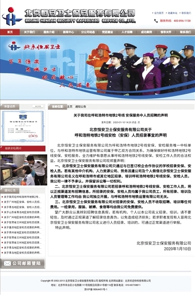 除了1號線和2號線安保,恒安衛(wèi)士還將為即將開通的地鐵2號線提供安檢服務。事實上,恒安衛(wèi)士近年來多次在全國多個城市引起地鐵安保安檢員高價招聘亂象。記者從恒安衛(wèi)士官網(wǎng)上看到,2015年9月至2020年1月,恒安衛(wèi)士先后發(fā)布20次聲明,就其公司在廣州、青島、南昌、南寧、蘭州、貴陽、重慶等城市引起高價招聘地鐵安檢、安保人員亂象做出辯解。最近的一次,則是1月20日發(fā)布的《關于我公司在呼和浩特市地鐵2號線安保服務中人員招聘的聲明》。