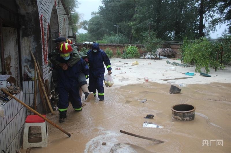清水河縣消防救援大隊營救被困群眾(央廣網(wǎng)發(fā)呼和浩特市消防救援支隊供圖)