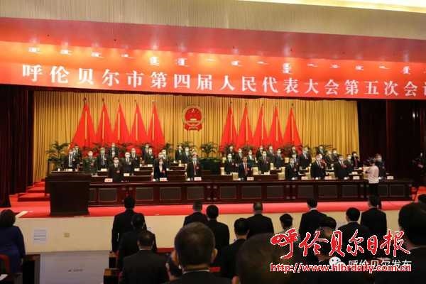 2月23日9時,在雄壯的國歌聲中,呼倫貝爾市第四屆人民代表大會第五次會議在呼倫貝爾市政務綜合樓報告廳開幕。