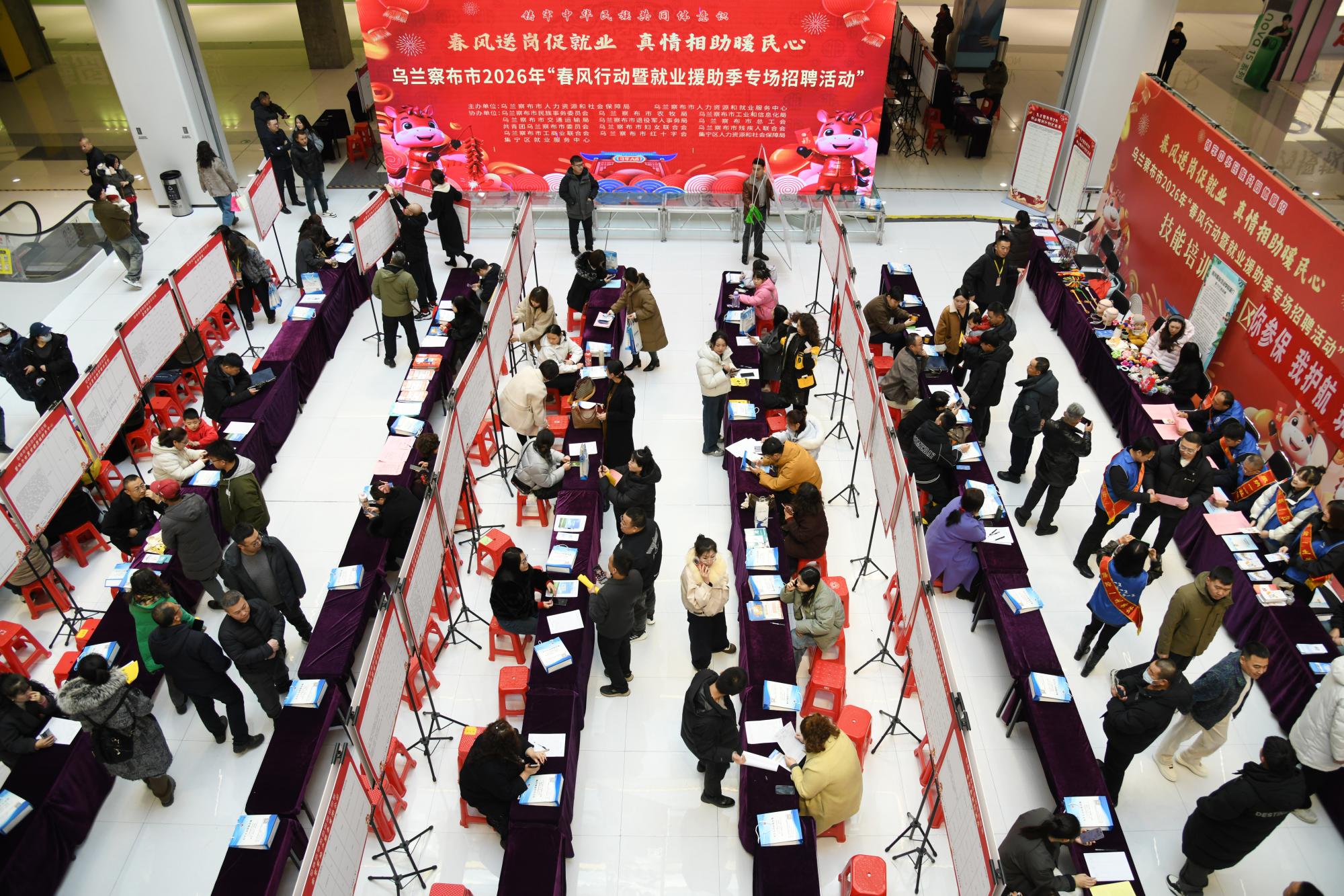 2月23日,以“春風(fēng)送崗促就業(yè) 真情相助暖民心”為主題的烏蘭察布市2026年春風(fēng)行動(dòng)暨就業(yè)援助季專場(chǎng)招聘活動(dòng)在集寧區(qū)維多利摩爾城舉行。