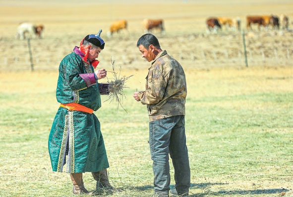 3月28日,在草場(chǎng)上,一名嘎查黨員與牧民交流。近年來(lái),內(nèi)蒙古西烏珠穆沁旗浩勒?qǐng)D高勒鎮(zhèn)巴彥額日和圖嘎查堅(jiān)持黨建引領(lǐng),在發(fā)展牧區(qū)旅游、綠色畜牧業(yè)提高嘎查集體經(jīng)濟(jì)收入的同時(shí),基層黨組織還通過(guò)直播、短視頻等方式,吸引外地游客及客商,帶動(dòng)牧民增收致富。新華社記者王楷焱攝