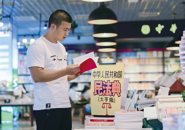 6月10日,呼和浩特市民在內(nèi)蒙古新華書店購買《中華人民共和國民法典》。據(jù)工作人員介紹,《中華人民共和國民法典》自6月2日擺上貨架就十分吸引讀者目光,成為熱銷圖書,截至目前該書店訂購量已逾2000冊(cè)。攝影/北方新報(bào)正北方網(wǎng)記者 牛天甲