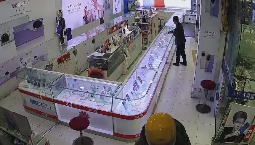 二手手機店監(jiān)控畫面。本文圖片均為 上海寶山警方 提供