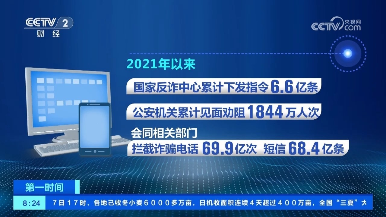 公安機(jī)關(guān)持續(xù)推進(jìn)預(yù)警勸阻和技術(shù)反制工作。2021年以來(lái),國(guó)家反詐中心累計(jì)下發(fā)指令6.6億條,公安機(jī)關(guān)累計(jì)見(jiàn)面勸阻1844萬(wàn)人次,會(huì)同相關(guān)部門攔截詐騙電話69.9億次、短信68.4億條,處置涉案域名網(wǎng)址1800萬(wàn)個(gè),緊急攔截涉案資金1.1萬(wàn)億元。