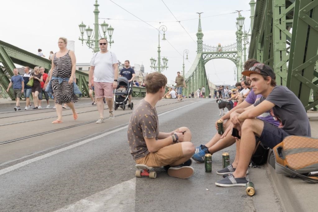 2019年7月21日,人們在匈牙利首都布達佩斯的自由橋上游玩。新華社發(fā)(弗爾季·奧蒂洛攝)