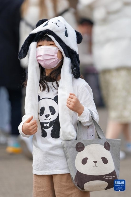 2月19日,在日本東京上野動(dòng)物園,一名小朋友穿戴著大熊貓服飾游覽。新華社記者 張笑宇 攝