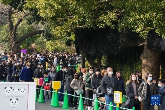 2月19日,在日本東京上野動(dòng)物園,游客排隊(duì)與大熊貓“香香”告別。新華社記者 張笑宇 攝