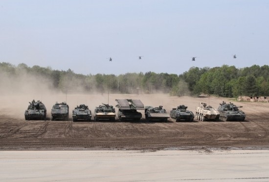 2019年5月20日,在德國蒙斯特,北約快速反應部隊裝甲車及直升機參與演示。(新華社記者單宇琦攝)