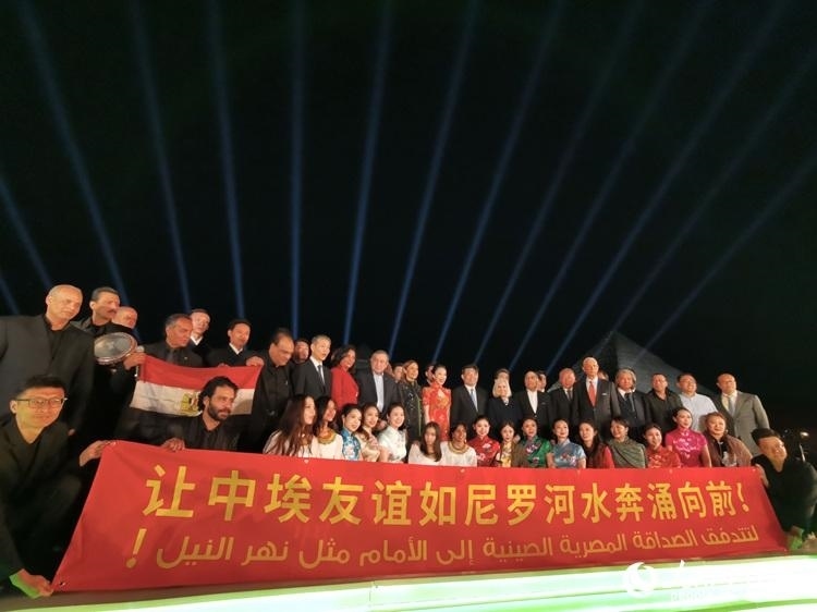 中埃兩國同為世界文明古國,人文領域合作空間大、潛力足。夜幕下的吉薩三大金字塔在燈光映襯下巍峨聳立,現(xiàn)場橫幅展示出“讓中埃友誼如尼羅河水奔涌向前”字樣,兩大古老文明此刻在金字塔上空相遇。音樂會的成功舉辦將成為中埃兩國文化合作新起點。