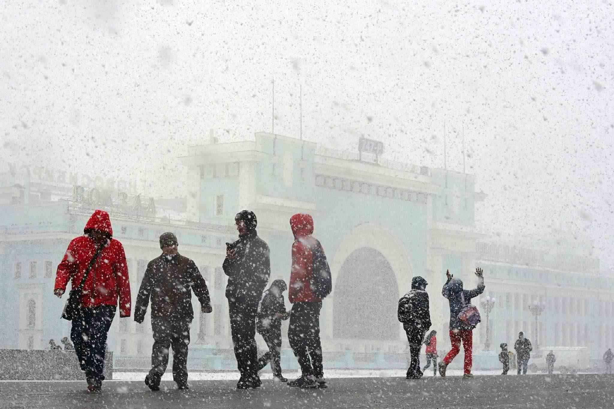 當(dāng)?shù)貢r(shí)間2023年4月14日,俄羅斯新西伯利亞,街道被雪覆蓋。視覺中國