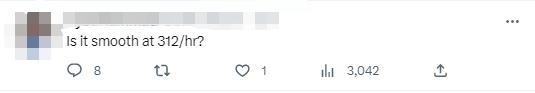 在推特上,不少網(wǎng)友跟帖回應(yīng),有人好奇,時(shí)速312公里的乘車(chē)體驗(yàn)是否流暢?