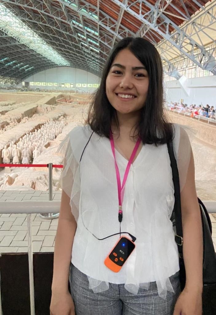 卡莉達(dá)參觀秦兵馬俑時拍照留念。受訪者供圖