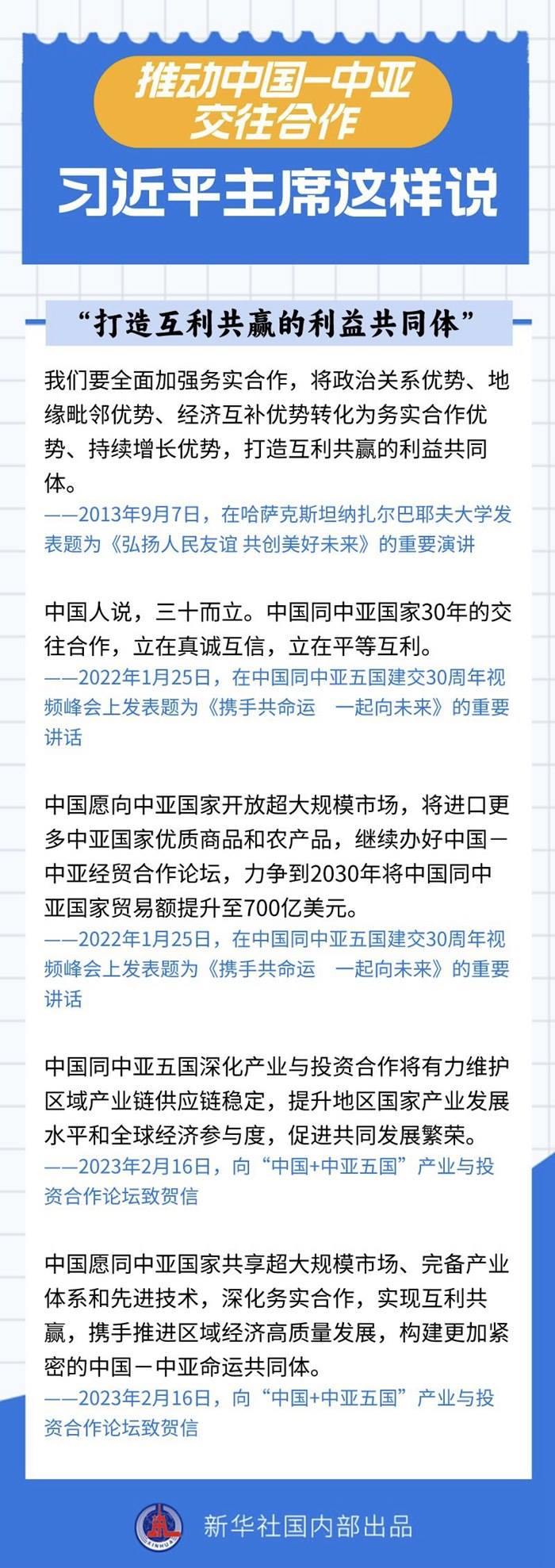 過去十年間,習(xí)近平主席同中亞五國領(lǐng)導(dǎo)人保持密切互動(dòng),引領(lǐng)中國同中亞國家政治互信不斷深化,務(wù)實(shí)合作提質(zhì)升級,國際協(xié)作走深走實(shí)。關(guān)于中國-中亞交往合作,習(xí)近平主席作出過哪些重要論述?一起來看——