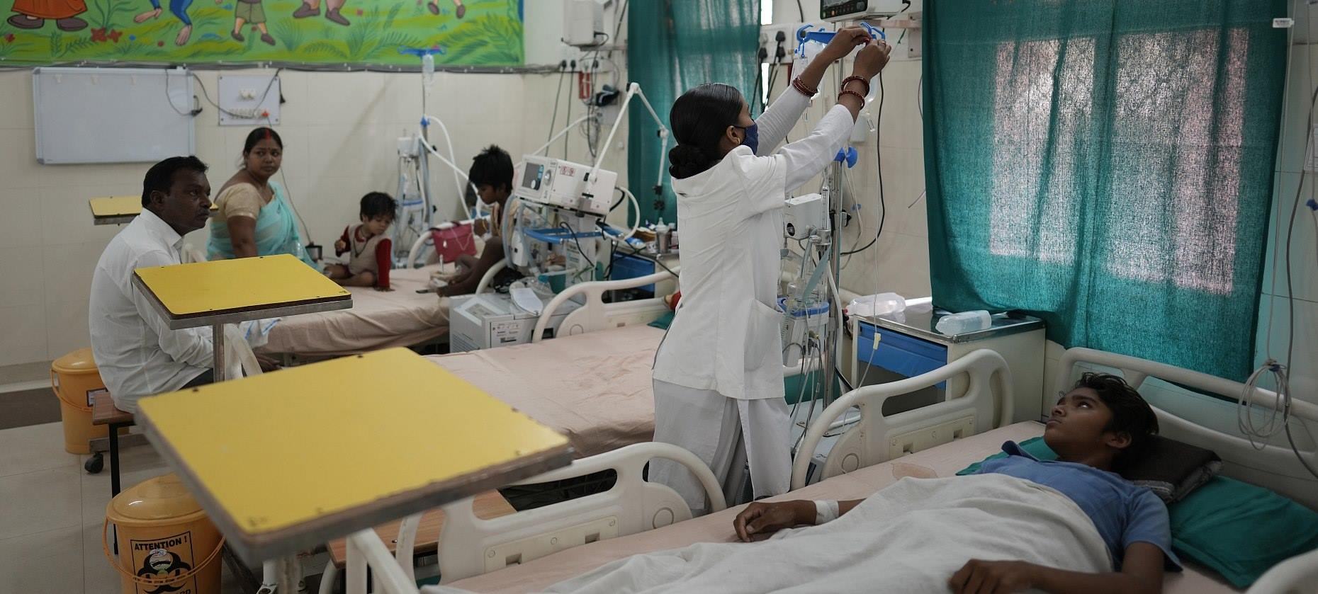 當(dāng)?shù)貢r(shí)間2022年4月24日,印度普拉亞格拉杰,高溫持續(xù),很多孩子因中暑在醫(yī)院治療。