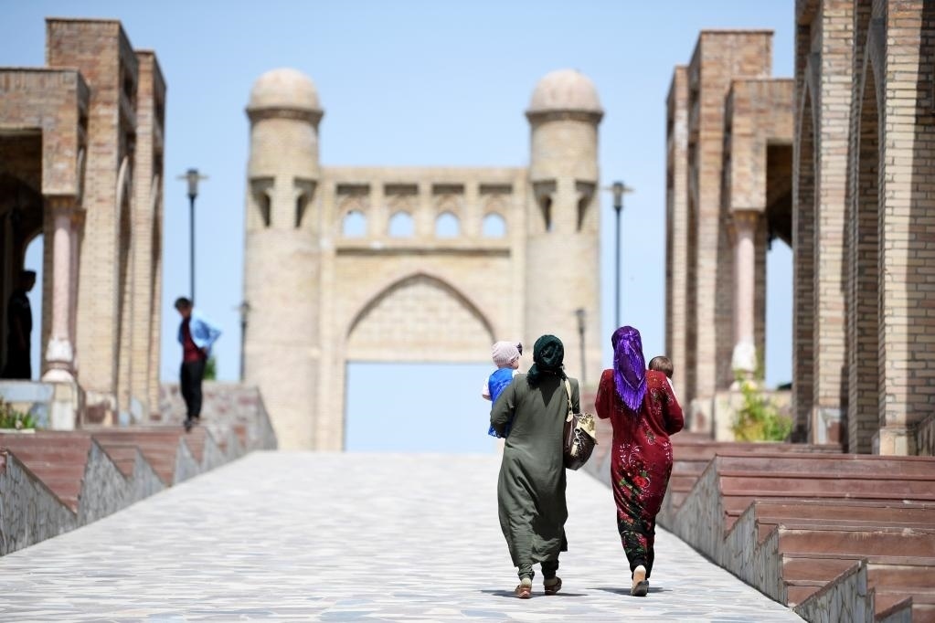 2022年9月3日,人們在烏茲別克斯坦撒馬爾罕市列吉斯坦廣場游覽。新華社發(fā)