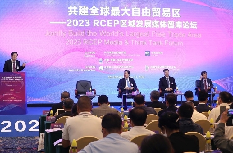 人民網(wǎng)???月21日電 (記者苑基榮)《區(qū)域全面經濟伙伴關系協(xié)定》(以下簡稱RCEP)正式生效實施一年多來,其促進區(qū)域貿易投資增長與經濟復蘇的紅利不斷釋放。5月21日,中共海南省委宣傳部、中國日報社、中國(海南)改革發(fā)展研究院在??诠餐鬓k“共建全球最大自由貿易區(qū)——2023 RCEP區(qū)域發(fā)展媒體智庫論壇”。來自中國、韓國、日本、新加坡、菲律賓、老撾、緬甸、柬埔寨、馬來西亞、印度尼西亞、澳大利亞、英國等國家的主流媒體、智庫人士以及國際組織、駐華使館官員和企業(yè)界共450余位代表參加本次論壇,共同圍繞“共建全球最大自由貿易區(qū)”分享觀點、交流思想,為推動區(qū)域交流合作積極建言獻策。