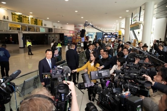 5月23日,中國新任駐美大使謝鋒抵美履新。在紐約機(jī)場,謝鋒與在場的中外媒體及各界人士交流互動。