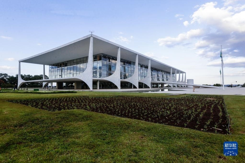 這是5月15日在巴西首都巴西利亞拍攝的總統(tǒng)府普拉納爾托宮。