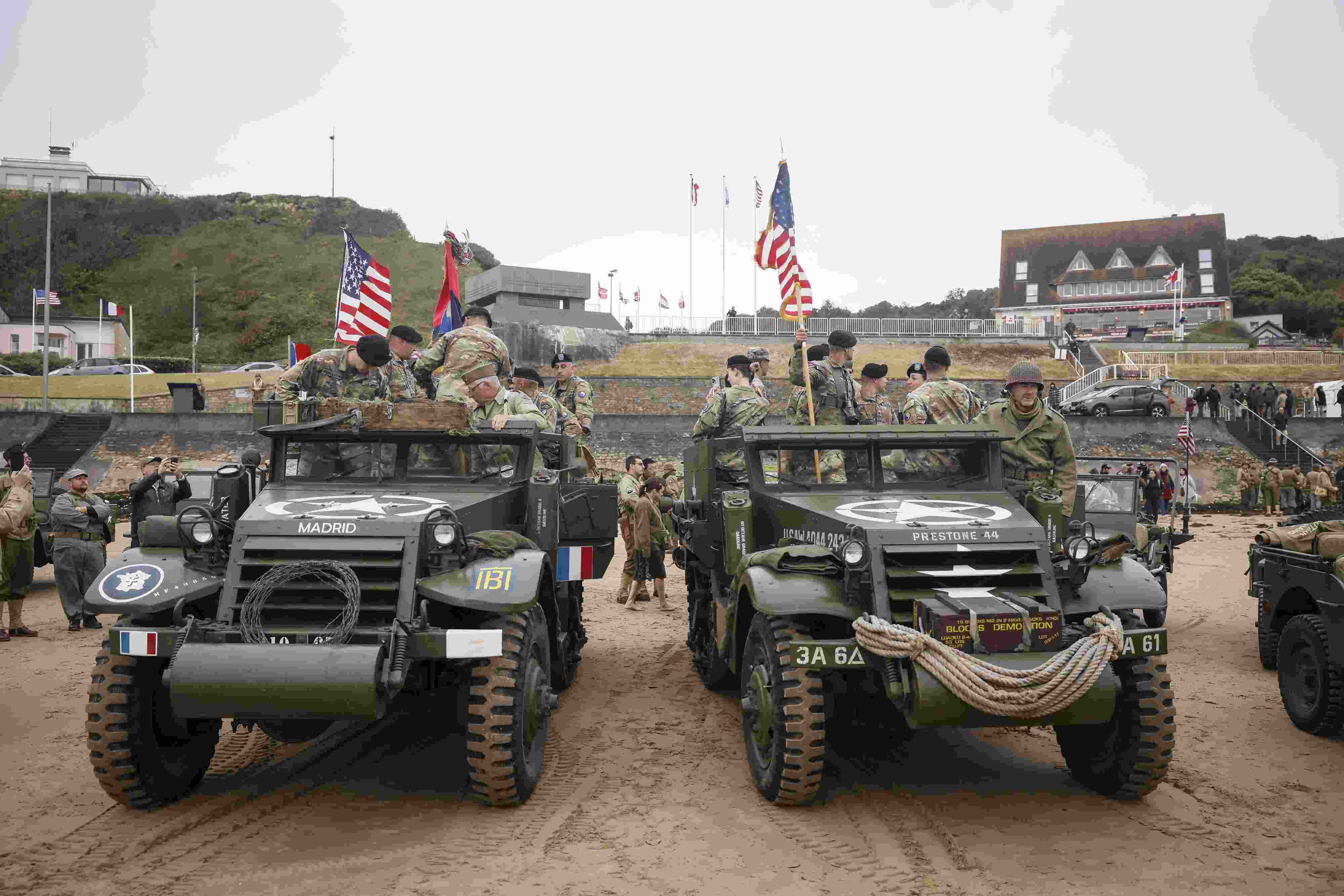 當(dāng)?shù)貢r間2023年6月6日,法國奧馬哈海灘,人們重現(xiàn)戰(zhàn)爭場景紀(jì)念諾曼底登陸。1944年6月6日黎明時分,近16萬盟軍在諾曼底登陸。 視覺中國