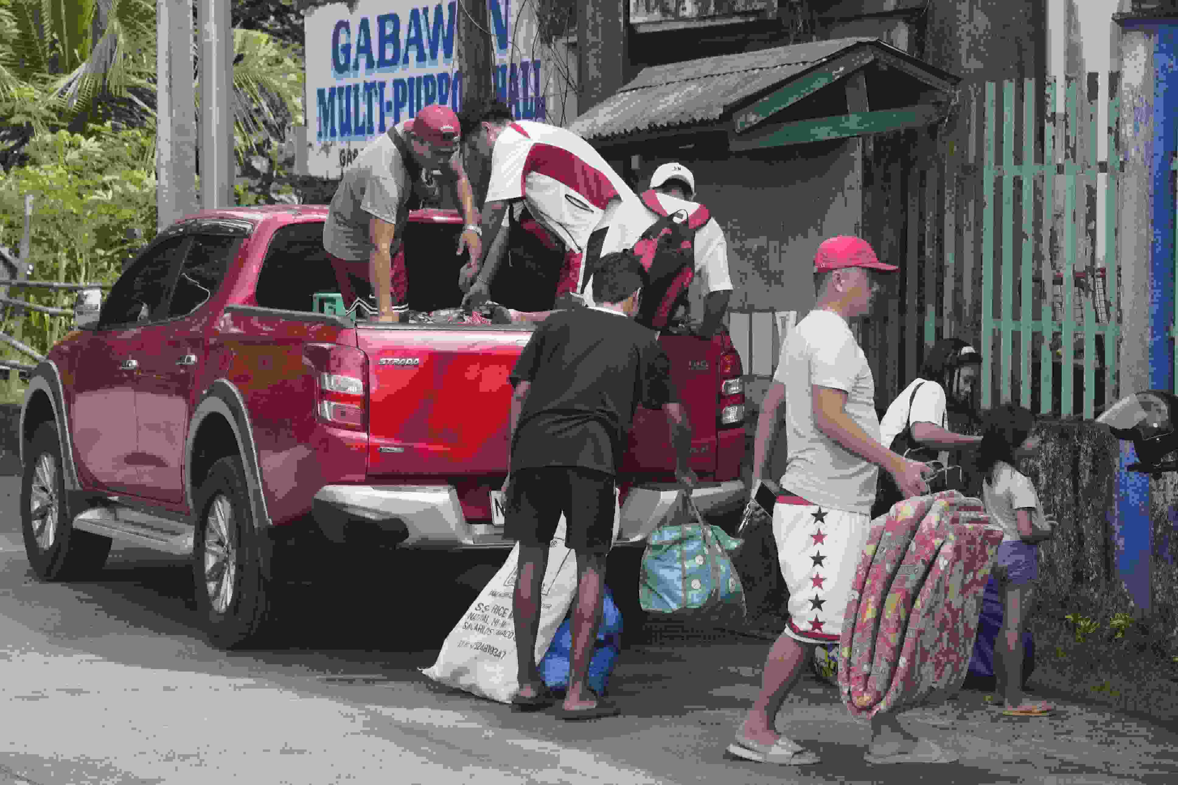 當(dāng)?shù)貢r(shí)間2023年6月10日,菲律賓阿爾拜省,撤離人員帶著他們的物品抵達(dá)臨時(shí)安置點(diǎn)。 視覺(jué)中國(guó)