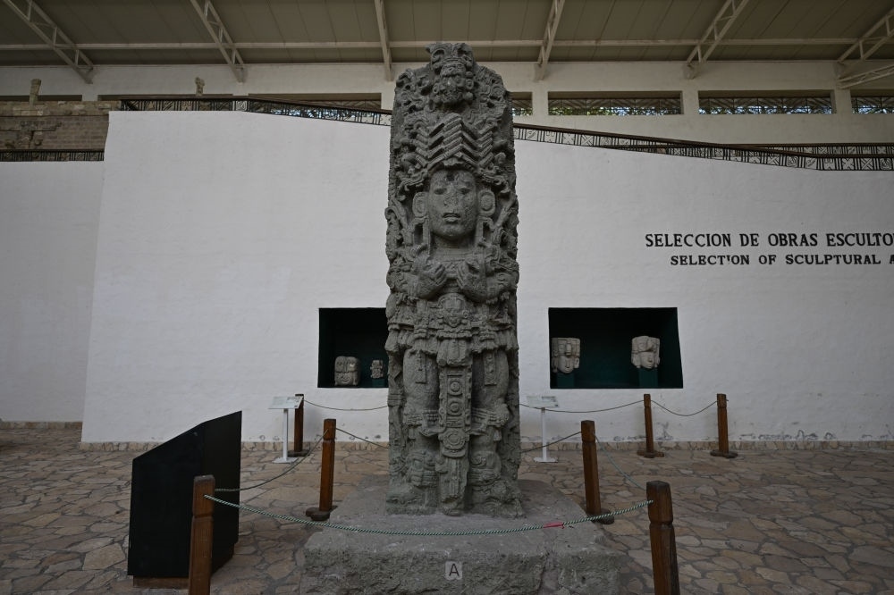 科潘遺址旁有一座國際考古隊倉庫,一排排高聳木架上堆滿石雕,凝聚著各國考古學(xué)家多年心血。