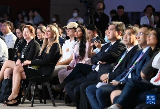 這是6月29日拍攝的第十四屆夏季達(dá)沃斯論壇閉幕全會(huì)現(xiàn)場。新華社記者 趙子碩 攝