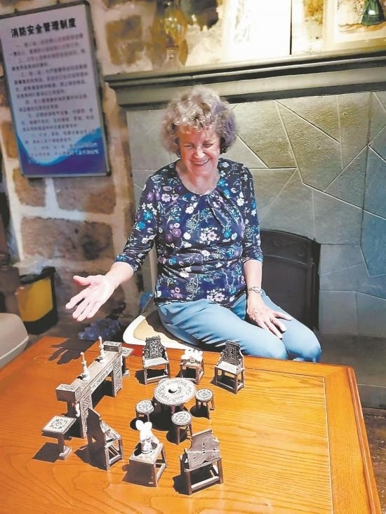 “祖輩生活過、留下痕跡的地方就是家,我們這次是送老物件回家。”穆言靈是穆藹仁的兒媳,她這次帶來了三大箱的藏品,并在現(xiàn)場展示了家族在鼓嶺使用過的有著中國青花元素的蒂凡尼瓷碗。程高登捐贈的是其父在90歲高齡時編寫的家族史,書中部分情節(jié)詳細介紹了20世紀的鼓嶺生活。來自蒲天壽家族的祖孫二人蒲光珠和凱茜,捐贈的是當年家族在鼓嶺避暑時所租住房產(chǎn)的地契原件,還有一本其家族成員編纂的小說,里面也有對鼓嶺生活的生動描述。柯志仁的孫女畢樂華捐贈了整套迷你版的石制中式家具擺件,這是畢樂華媽媽當年愛不釋手的藏品,也常被兒時的畢樂華用來過家家。