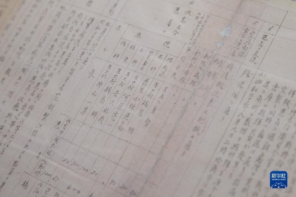 8月5日,在黑龍江省牡丹江市舉辦的侵華日軍細菌戰(zhàn)罪證陳列展上,研究人員展示《日軍哈爾濱第一陸軍病院原薄》(影印件)。