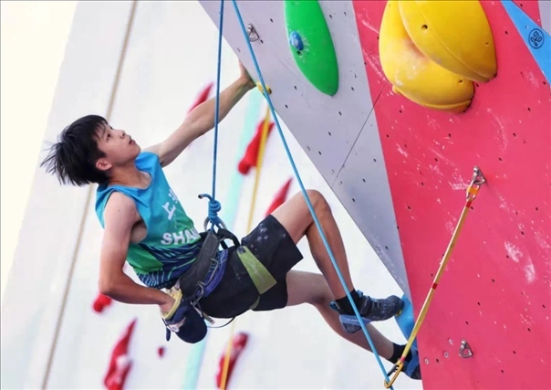 今年3月,上海攀巖隊隊員倪國慶成功入選巴黎奧運會國家攀巖集訓隊。