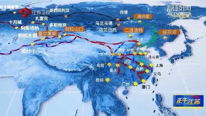 1992年,江蘇連云港開通最早發(fā)往中亞的班列;2013年,蘇州、鄭州、重慶、成都首批開通中亞班列;2016年,統(tǒng)一品牌:中歐班列。截至2023年9月底,中歐班列累計(jì)開行超7.8萬列,聯(lián)通中國境內(nèi)112個(gè)城市,通達(dá)歐洲25個(gè)國家的217個(gè)城市。