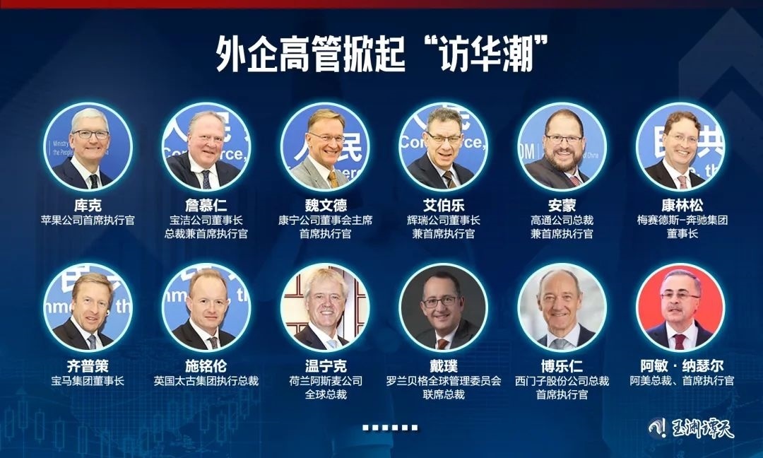 所以,我們看到,今年以來,包括特斯拉、大眾汽車、星巴克、高通、寶馬等在內(nèi)的一百多位世界500強(qiáng)企業(yè)和行業(yè)龍頭企業(yè)的負(fù)責(zé)人紛紛訪問中國。