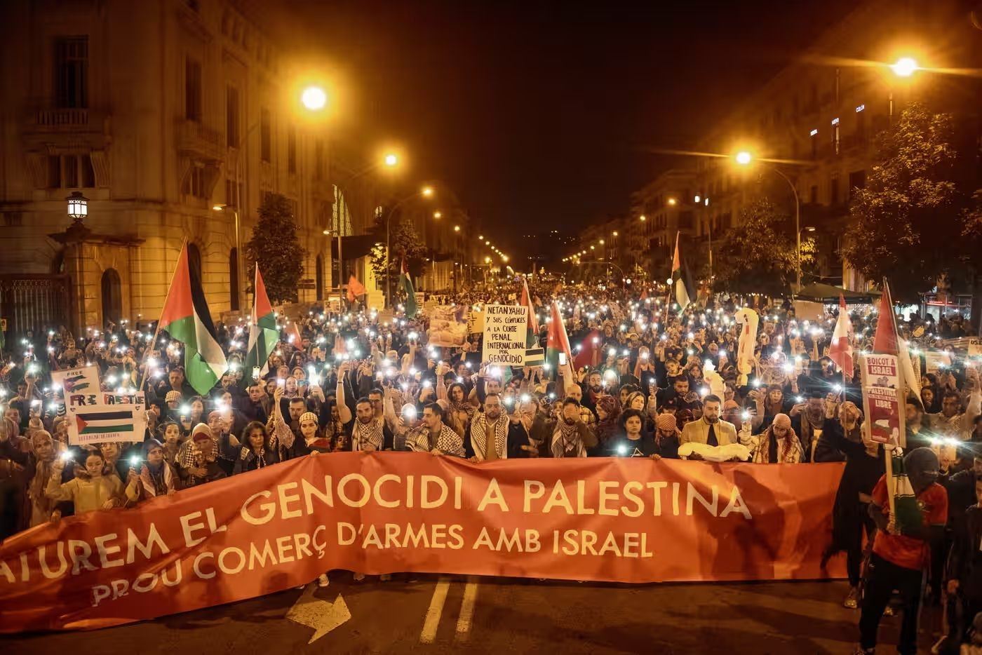 當地時間11日,民眾在西班牙巴塞羅那參加支持巴勒斯坦游行 圖源:《衛(wèi)報》