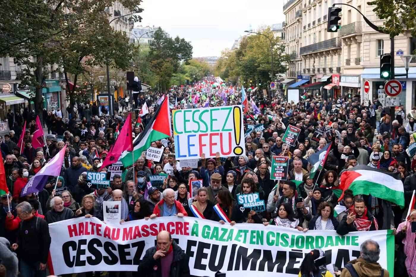當地時間11日,民眾在法國巴黎參加支持巴勒斯坦游行 圖源:《衛(wèi)報》
