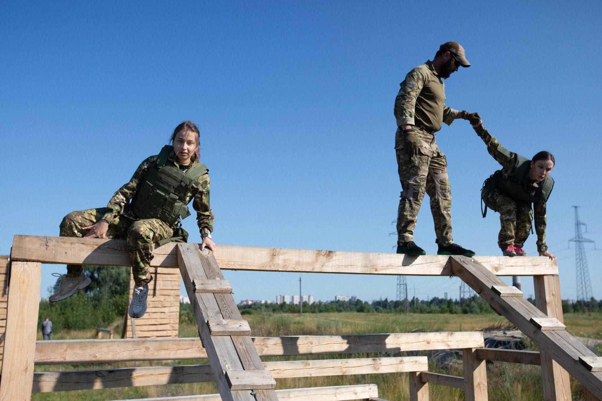 當(dāng)?shù)貢r間2023年7月15日,扎波羅熱地區(qū),烏克蘭女兵在不同的戰(zhàn)斗場景中進(jìn)行訓(xùn)練。