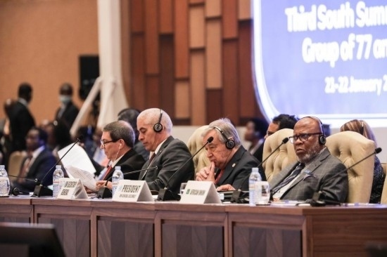 1月21日,聯(lián)合國秘書長古特雷斯(右二)參加在烏干達首都坎帕拉舉行的“77國集團和中國”第三屆南方首腦會議。 新華社發(fā)(阿佳拉·納瓦達攝)