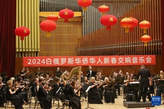 2024“溫暖迎春·共慶中國年”白俄羅斯華僑華人新春交響音樂會2日晚在白俄羅斯國家音樂廳舉辦。音樂會以中國傳統(tǒng)舞龍舞獅表演開場,中白兩國音樂家聯(lián)袂為觀眾奉獻了《春節(jié)序曲》《庫里安協(xié)奏曲》等經(jīng)典曲目。