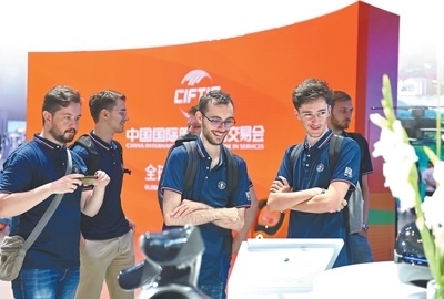 北京交通大學(xué)留學(xué)生在北京國家會議中心參觀2023年中國國際服務(wù)貿(mào)易交易會。胡慶明攝(影像中國)