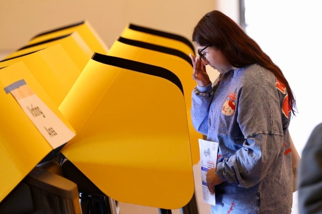 2024年3月5日,選民在美國(guó)洛杉磯一處投票站投票。新華社發(fā)