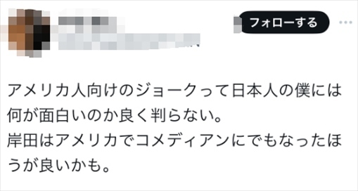 也有人說,“跟美國(guó)人講的這些笑話,作為日本人的我是真不知道好笑在哪里,可能岸田在美國(guó)當(dāng)個(gè)搞笑藝人比較好?!?/p>
