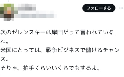 還有人說道:“有人說下一個(gè)澤連斯基是岸田。對(duì)美國(guó)來說,戰(zhàn)爭(zhēng)是賺錢的時(shí)機(jī),掌聲還是會(huì)給你的?!?/p>